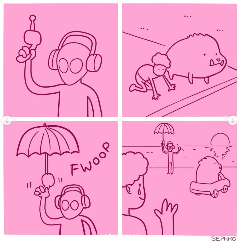 En Instagram y Pinterest he encontrado a grades ilustradores/dibujantes, disculpen mi ignorancia al no saber como llamarlos, personas que se dedican (entre otras cosas supongo yo) a hacer pequeñas historias en 4 viñetas y algunas veces en algunas cuantas más. Como historietas muy pequeñitas, de periódicos diarios o algunas revistas.